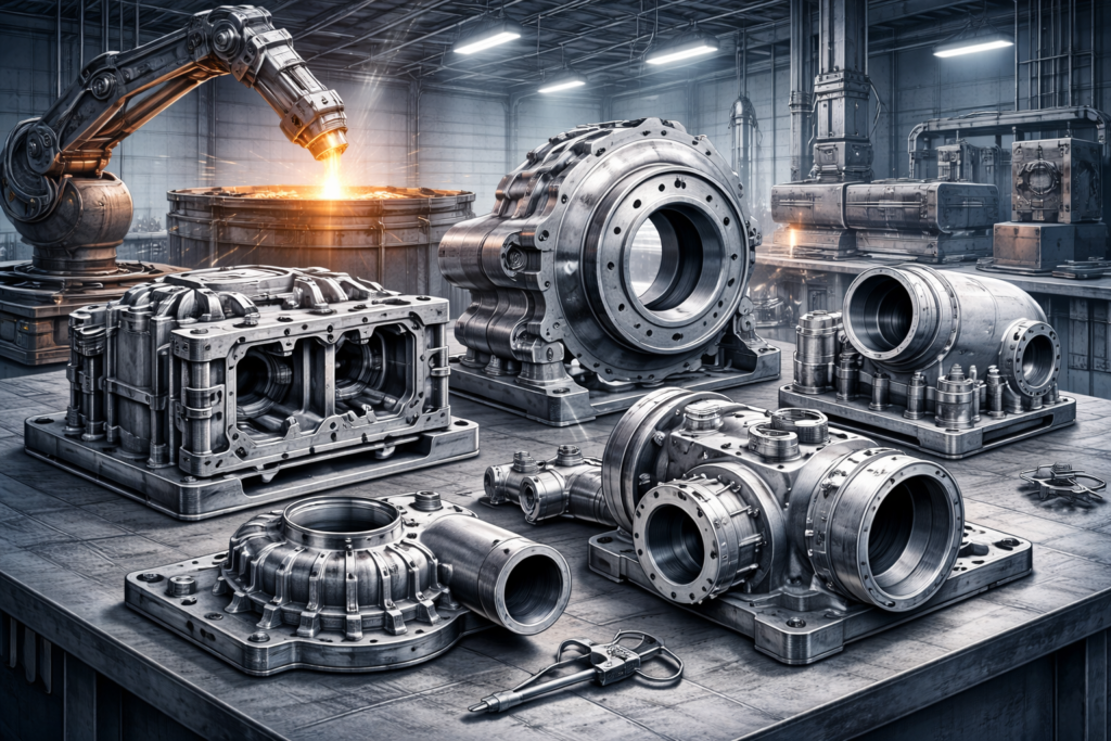 Casting Fabrication involves producing metal components by pouring molten metal into precisely designed molds and further refining them through fabrication processes such as machining, welding, and finishing. This integrated approach ensures high-quality, complex parts with excellent dimensional accuracy and structural strength for various industrial applications.